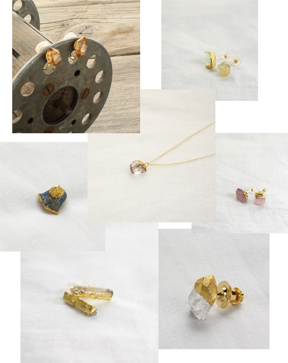 世界各国から集められた原石の結晶に、日本の伝統工芸である漆塗りの技法を用いてジュエリーに仕上げました。