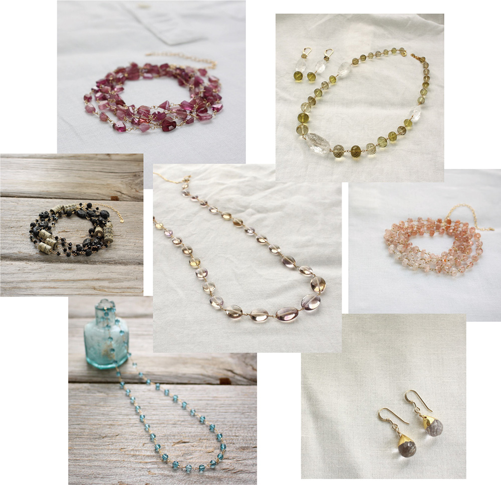 天然石のほか希少なアンティークビーズやヴィンテージ素材を用いて制作されています。